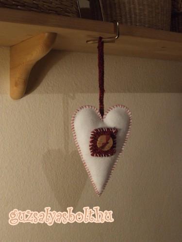6. Végül a pamutfonalból láncszemekkel zsinórt horgolunk és a szívet ezzel akasztjuk fel.