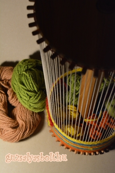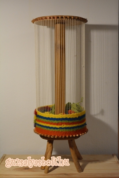 A kerek óriás karmantyú szövő alkalmas nagyobb méretű táskák, hátizsák, párna szövésére.