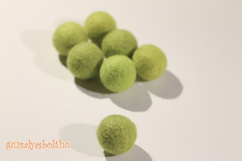 Kb. 2 cm átmérőjű fűzöld nemezgolyó.