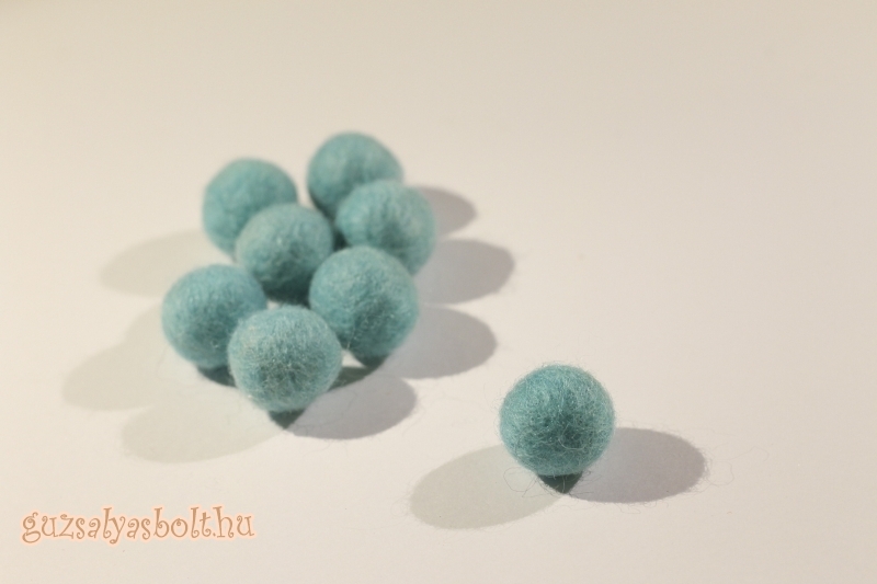 Kb. 2 cm átmérőjű vízkék nemezgolyó.