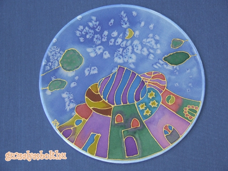 20 cm átmérőjű kézzel festett hernyóselyemkép