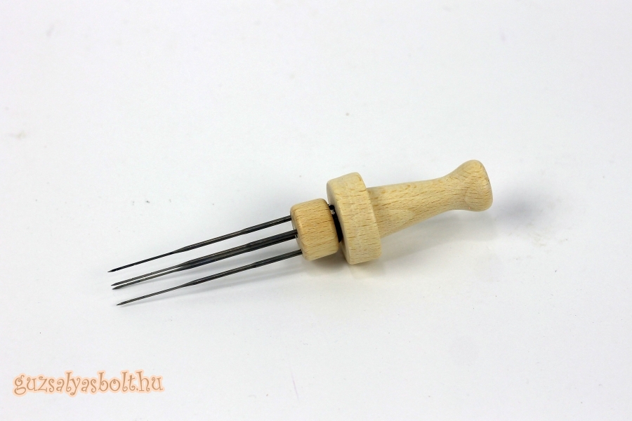 Fa fogantyú melybe 4 db tűt lehet helyezni + 4 db durva tű.