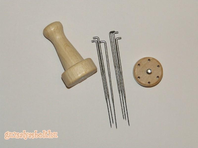Fa fogantyú melybe 6 db tűt lehet helyezni + 6 db közepes tű.